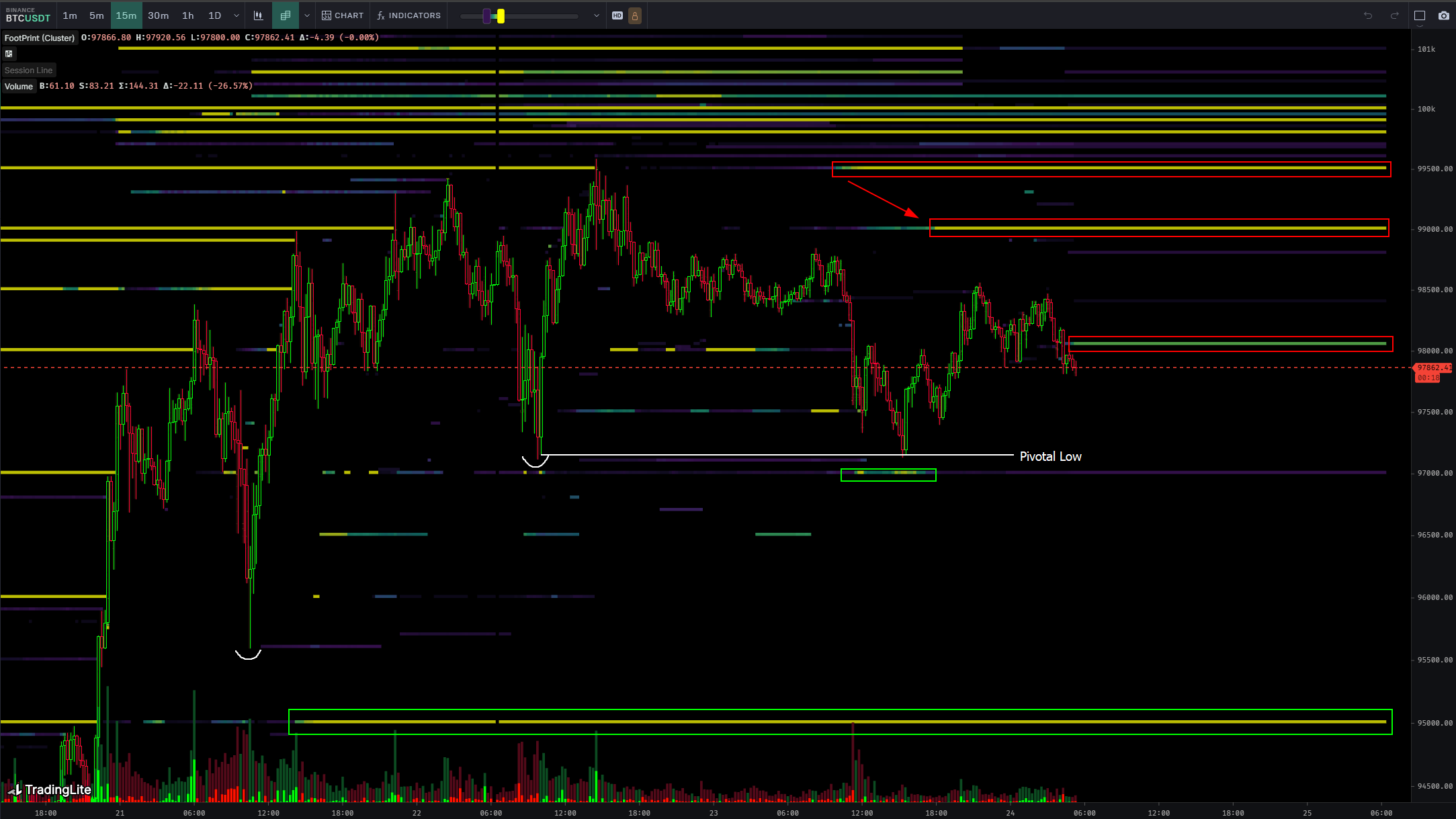 Рисунок 2. 15-минутный график пары BTC/USDT с данными о ликвидности. Источник: Skew/X.