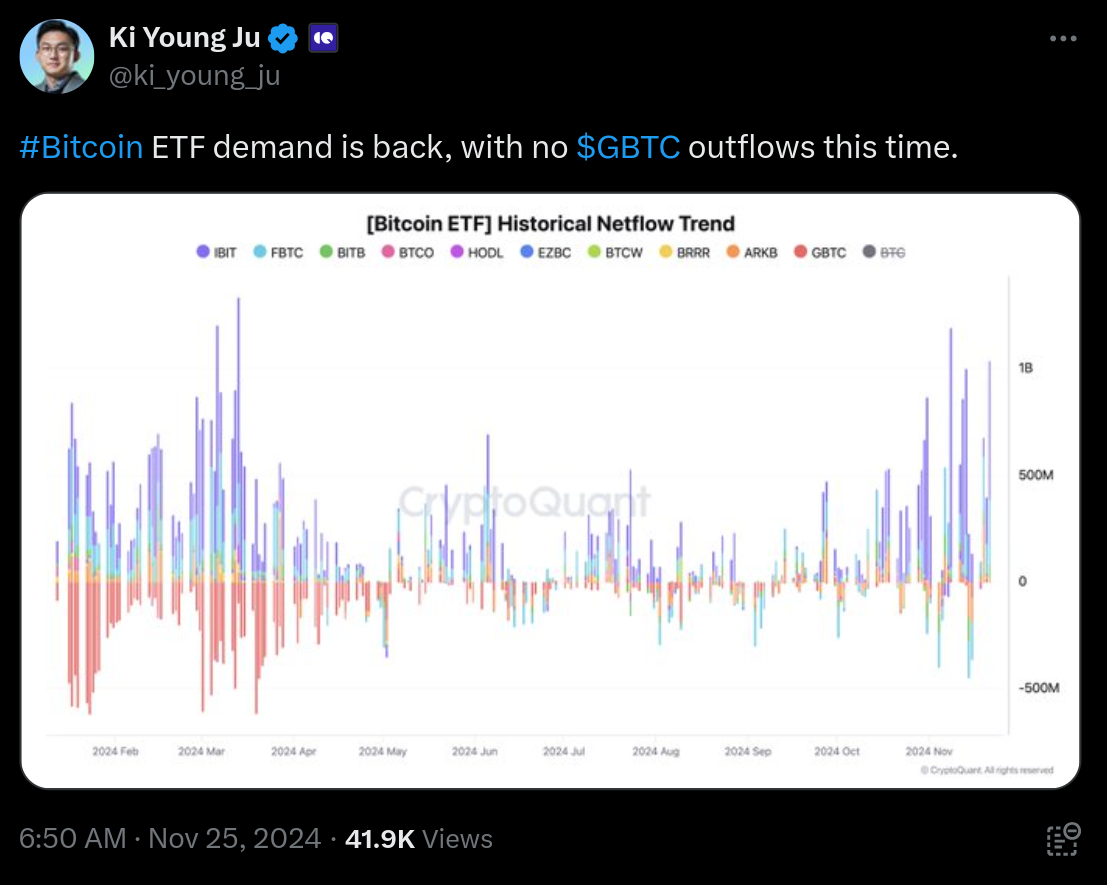 Тем временем, CryptoQuant вслед за другими предположил, что массовый приток капитала может свести на нет любое значительное давление со стороны продаж.