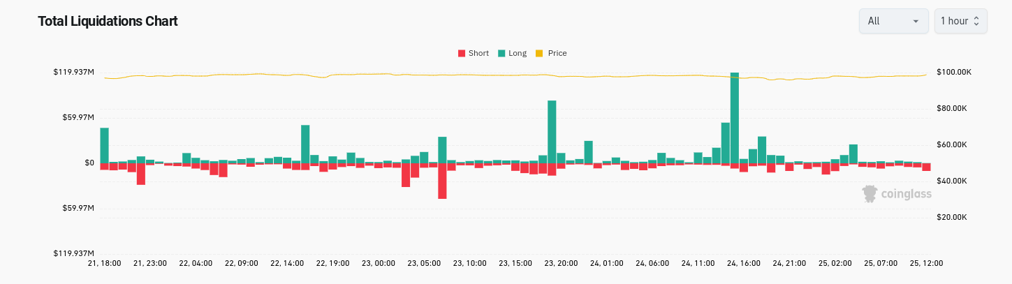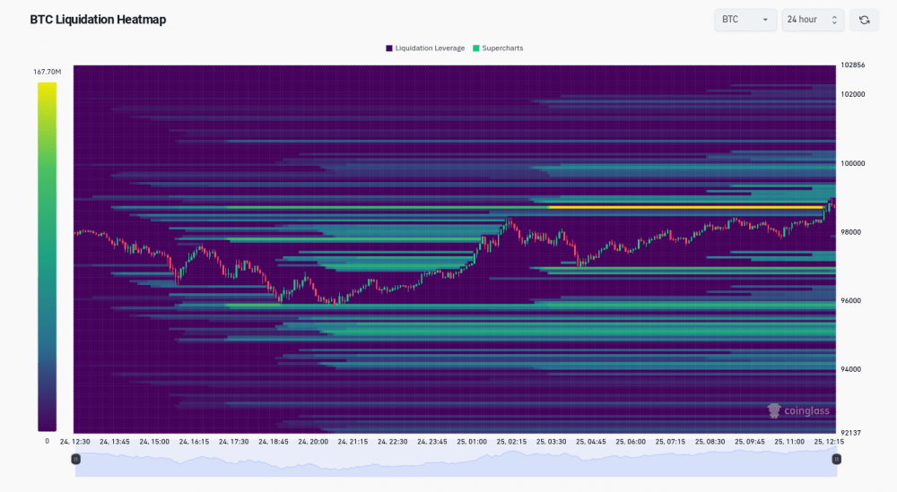 Между тем, данные CoinGlass показывают, что объем ликвидности по запросу вырос до уровня чуть ниже 100 000 долларов США, а цена достигла ключевого уровня ликвидации в 98 750 долларов США.