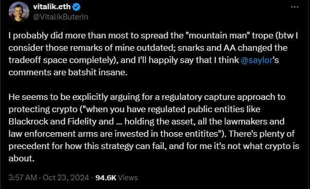 Как и ожидалось, реакция была быстрой и резкой: соучредитель Ethereum Виталик Бутерин назвал комментарии «безумным бредом», и несколько других видных членов криптосообщества, включая основателя и генерального директора Zap Джека Маллерса и известного инженера-программиста Джеймсона Лоппа, высказали аналогичное мнение.