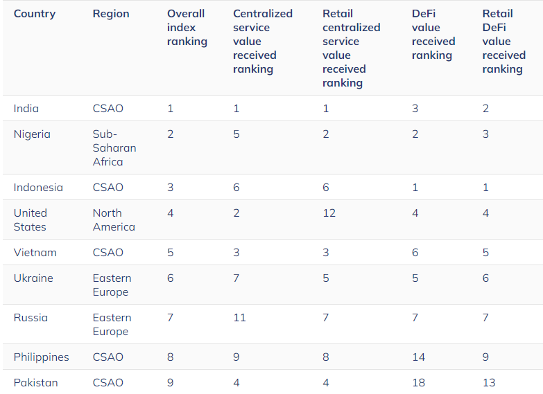 Рейтинг Global Adoption Index за 2024 год. Источник: Chainalysis.