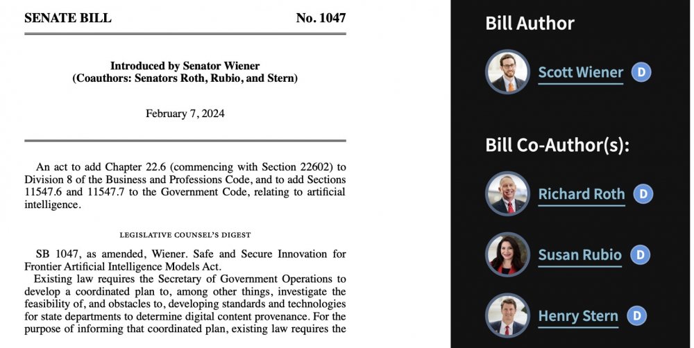 Рисунок 2. Законопроект SB-1047, предложенный сенаторами штата Винером, Ротом, Рубио и Стерном.