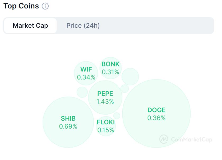 Несмотря на то, что все начиналось как шутка, Pepe, Dogecoin, Shiba Inu — все они достигли значительной рыночной капитализации. Источник: CoinMarketCap
