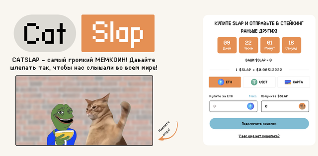 $SLAP доступен к покупке на DEX официального сайта. Купить токен можно с помощью ETH, USDT или карты. Напомним, что токен запущен только на блокчейне Ethereum. Мемкоины на других площадках являются мошенничеством.