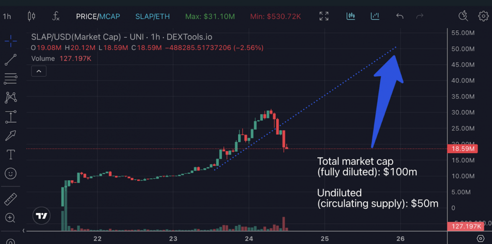 Binance – крупнейшая криптовалютная биржа в мире. Чтобы попасть в ее поле зрения, токены должны достигнуть рыночной стоимости $100 млн. $SLAP вполне может заинтересовать Binance благодаря скорости с которой растут ее цена и объем торгов.