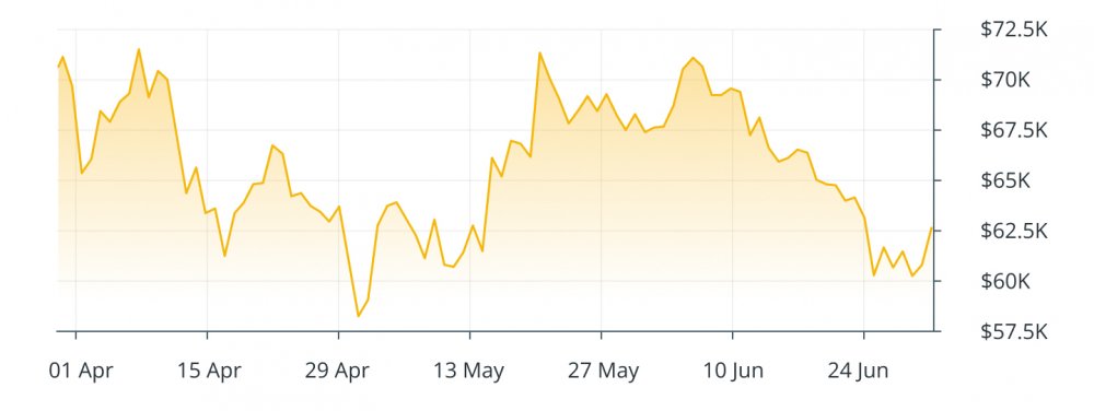 Цена биткоина с апреля по июль 2024 года. Источник: CoinGecko.