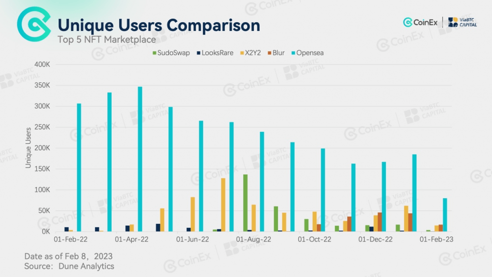 Следуя примеру LooksRare, в феврале 2022 года X2Y2 также раздала 120 миллионов токенов X2Y2, что составляет 12% от общего количества, пользователям OpenSea. Более того, сразу после этого проект запустил свою торговую площадку NFT. Стремясь превзойти OpenSea с точки зрения пользовательского опыта, X2Y2 внедрила дополнительные функции, включая массовый листинг, пакетную покупку и одноранговые транзакции, помимо основных функций торговли NFT. Между тем, он также предлагает дешевые сборы. К четвертому кварталу 2022 года X2Y2 также выпустила свою кредитную платформу NFT, которая теперь входит в тройку лучших кредитных платформ NFT с точки зрения доли рынка.
