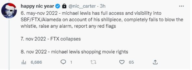 Биткойн-энтузиаст Ник Картер критикует Майкла Льюиса. Источник: Твиттер