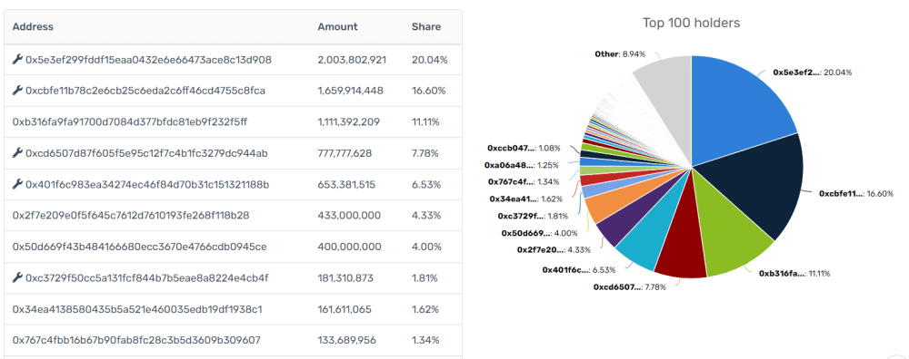 Последние данные показывают, что на 100 крупнейших держателей Polygon приходится 91,06% всех токенов MATIC. Большинство из них являются сетевыми контрактами, хотя значительная их часть принадлежит другим держателям.