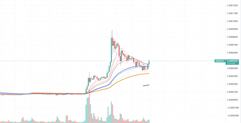 Shiba-Inu торгуется на уровне 0,000088 доллара; его предыдущий ATH был всего месяц назад. С тех пор он потерял более 50% своей стоимости. Но из-за быстрого восстановления рынка альткойнов киты Shiba-Inu начали продвигать токен, покупая значительные суммы на рынке.