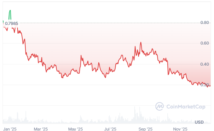 Цена ARB в этом году упала на 77%. Источник: CoinMarketCap