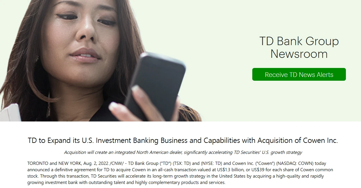 Сам банк Cowen претерпел встряску после того, как в августе 2022 года был приобретен TD Bank Group за 1,3 миллиарда долларов в рамках сделки, завершенной в марте этого года.