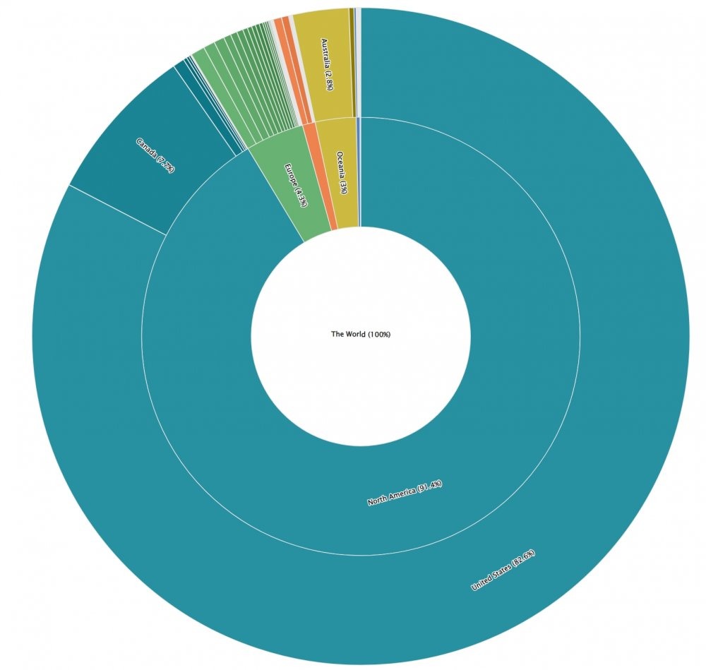 91,4% общего количества биткоин-банкоматов приходится на США и Канаду — 31 089 (82,6%) и 2909 (7,7%) соответственно.