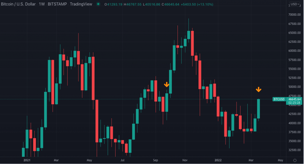 ДиПаскуале сказал, что у биткоина была «сильная неделя, особенно учитывая истечение квартальных опционов» в пятницу, и отметил, что биткоин «показал устойчивость» после решения Федеральной резервной системы на прошлой неделе повысить процентные ставки и продолжающейся эскалации конфликта России и Украины с ее экономическими последствиями.