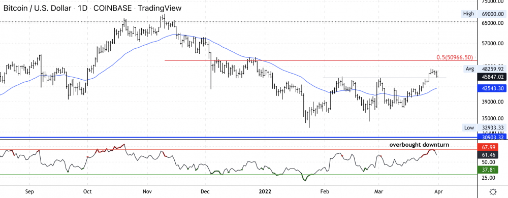 Биткоин находится в режиме отката после того, как продавцы отреагировали на сопротивление на уровне 48 000 долларов. Криптовалюта может найти поддержку на уровне 43 000 долларов США в азиатский торговый день, что может стабилизировать нисходящее движение.