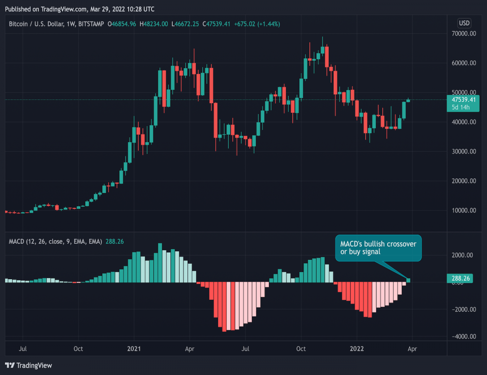 Гистограмма сходимости скользящей средней (MACD) является одним из самых популярных индикаторов для оценки силы и импульса тренда. Кроссовер над нулевой линией представляет собой бычий сдвиг импульса.
