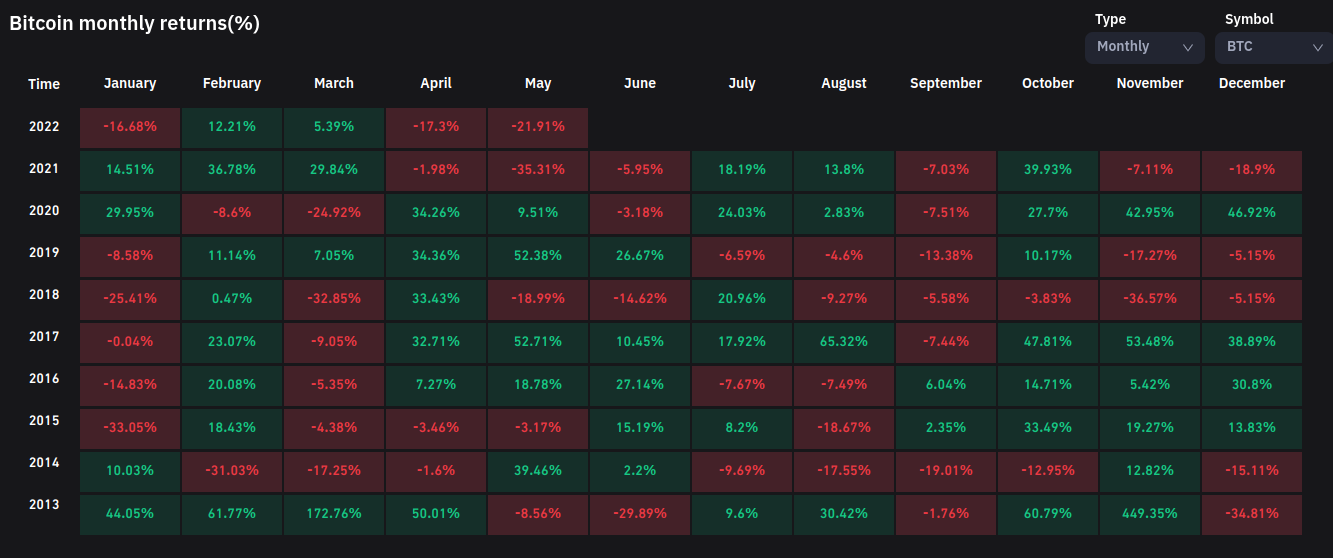 Это сделает май 2022 года вторым худшим маем в истории биткоина, подтвердили данные цепного мониторинга Coinglass.