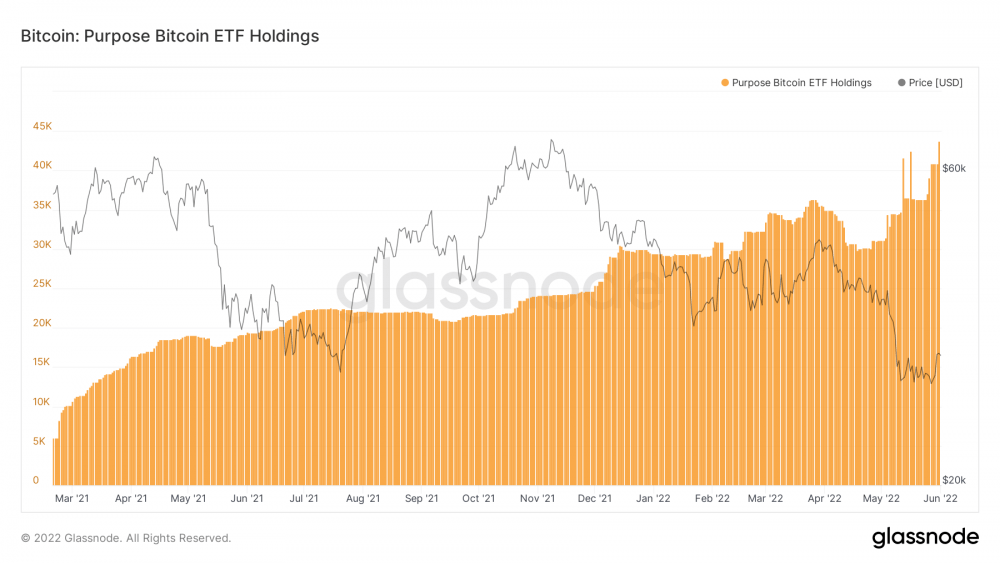 Биткойн-ETF Purpose, запущенный в феврале 2021 года, демонстрирует стабильный приток в течение последних пяти торговых дней. Согласно данным Glassnode, предоставленным Яном Вустенфельдом, по состоянию на вторник активы фонда увеличились до 43 701,7 BTC. Это самый высокий уровень за всю историю.