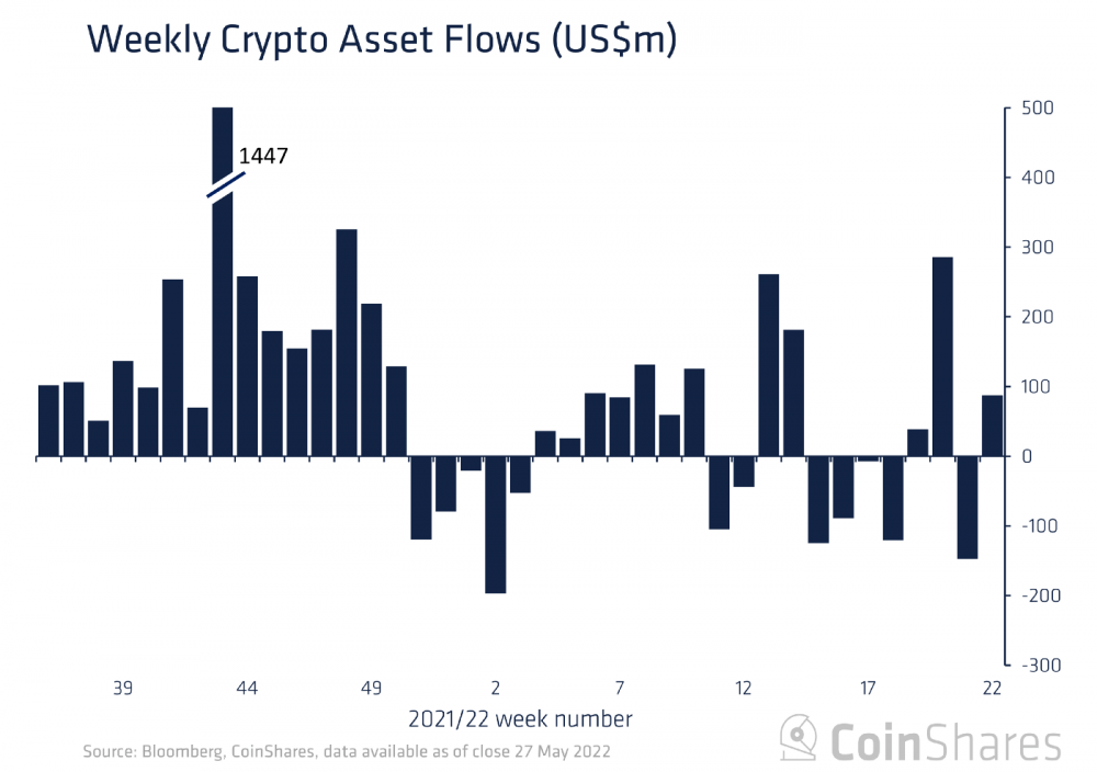 Эта новость стала облегчением от оттока цифровых активов, вызванного обвалом рынка в прошлом месяце, когда за неделю 24 мая общий отток из институциональных фондов составил 141 миллион долларов. Это был самый высокий отток с июля 2021 года.