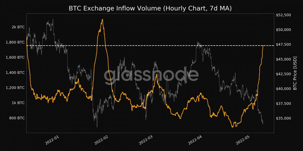 «Объем притока биткоинов на биржи (7-дневная скользящая средняя) только что достиг 3-месячного максимума в 1 755 021 BTC. Предыдущий 3-месячный максимум в 1 729 605 BTC наблюдался 8 мая 2022 г», - сообщает в твиттере Glassnode Alerts.