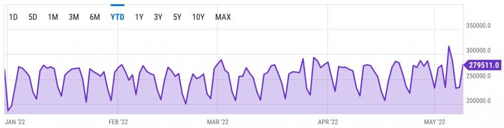 Несмотря на плохое настроение, ежедневные транзакции BTC, похоже, еще не пострадали. Согласно онлайн-данным YCharts, в воскресенье было совершено 233 892 ежедневных транзакции на сумму около 30 миллиардов долларов, что является средним показателем с января.