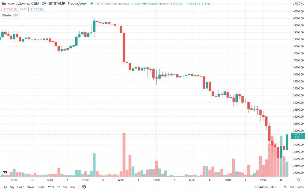 Согласно данным TradingView, BTC в настоящее время упал приблизительно на 15% за последние семь дней, торгуясь на уровне около 31 800 долларов на момент написания.