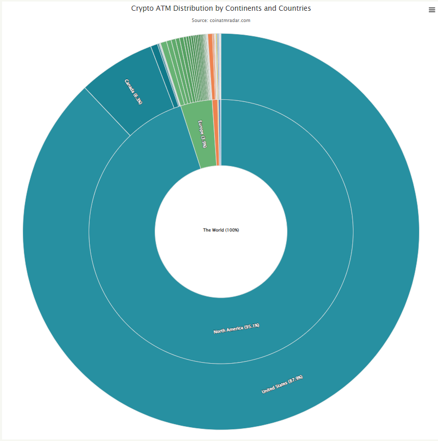 Глобальное распределение криптовалютных банкоматов. Источник: Coin ATM Radar