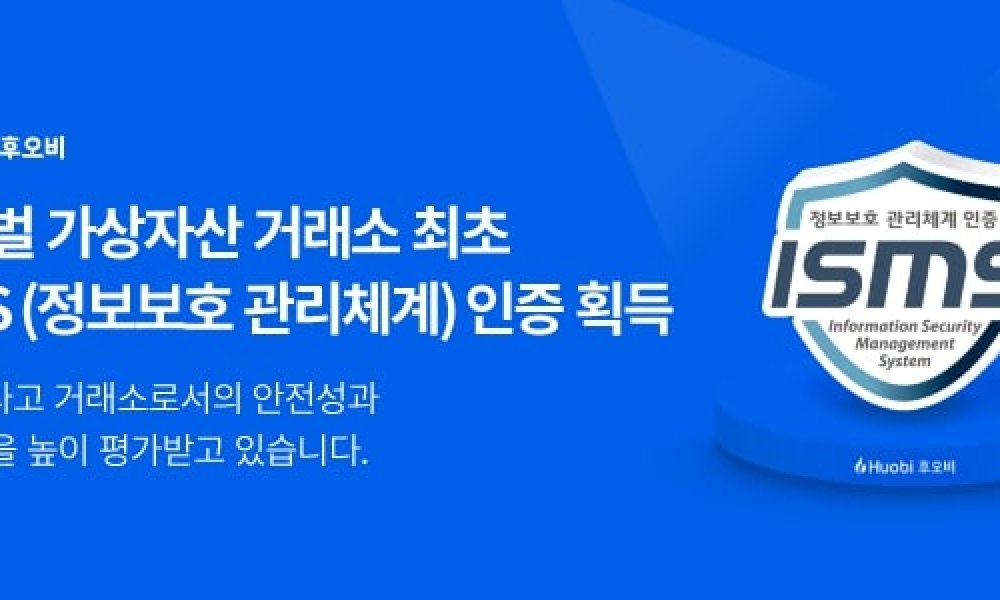 18-го числа Huobi Korea объявила о получении сертификата системы управления информационной безопасностью (ISMS) от Корейского агентства по Интернету и безопасности (KISA).
