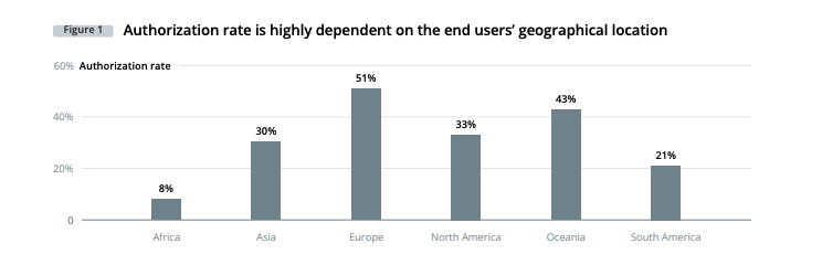 Процент успешно авторизованных транзакций по регионам. Источник: Cointelegraph Research.