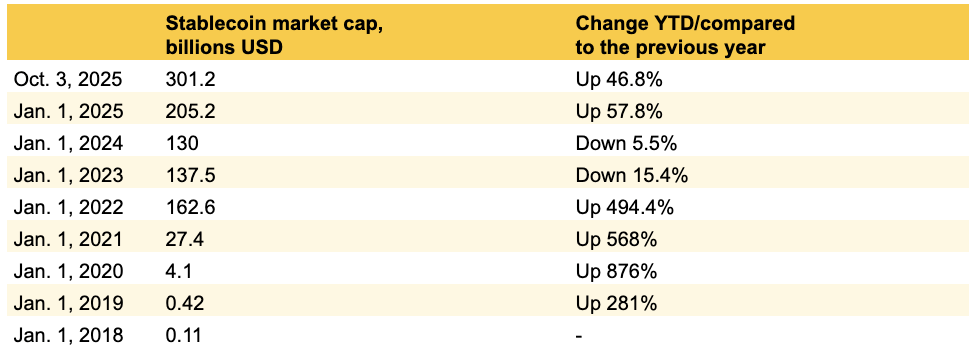 Рыночная капитализация стейблкоинов превысила $300 млрд