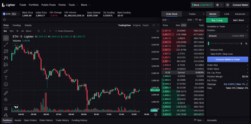 Lighter - это нативный DEX-протокол на основе Layer 2 на Ethereum для бессрочных фьючерсов, сочетающий скорость и ликвидность CEX c прозрачностью и верифицируемостью DEX. В отличие от Hyperliquid, который создал собственный блокчейн Layer 1, Lighter выбрал Ethereum Layer 2, чтобы воспользоваться преимуществами открытой совместимости, и тесно интегрируется с такими протоколами, как Aave.