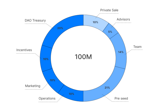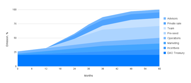 Первоначальное предложение STON составляет 100 миллионов токенов. Оно распределяется между всеми ключевыми областями с основным упором на предоставление токенов сообществу через DAO: