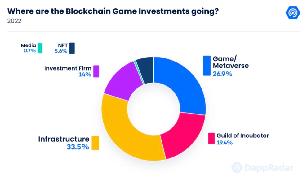 Как в 2022 году распределялись инвестиции в блокчейн-игры. Источник: DappRadar.