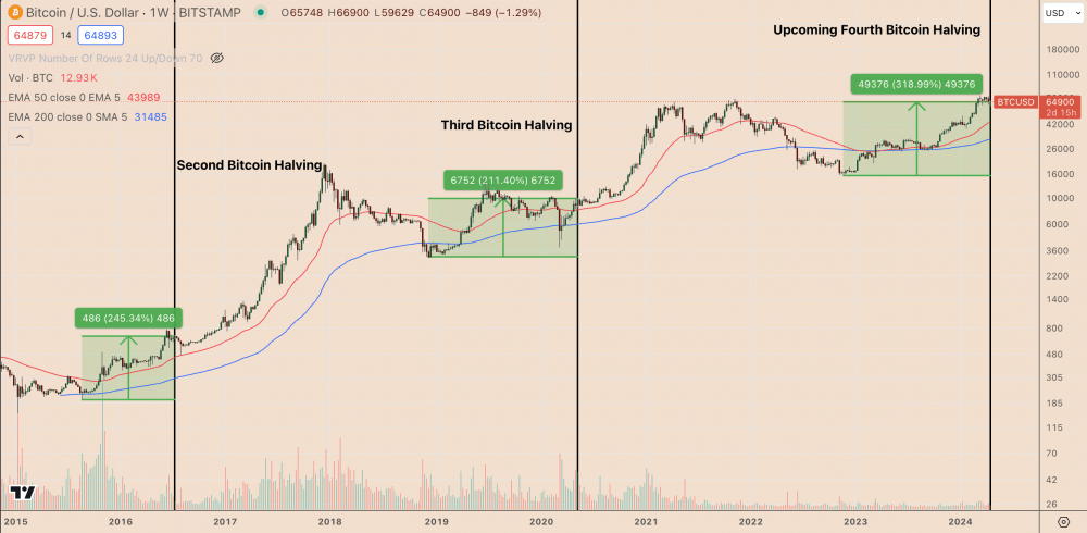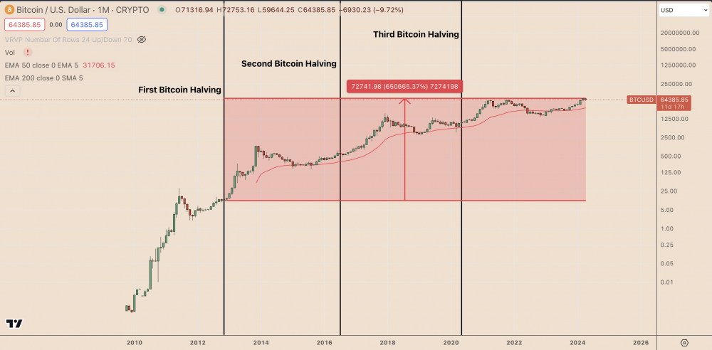 Цена BTC выросла более чем на 650 000% с момента первого халвинга