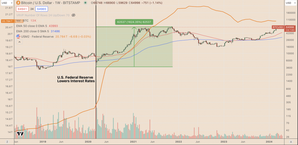 Множественные катализаторы стимулировали спрос на Биткоин после его халвинга. Например, в 2020–2021 годах в целом миролюбивая позиция мировых центральных банков существенно способствовала росту цены Биткоина.