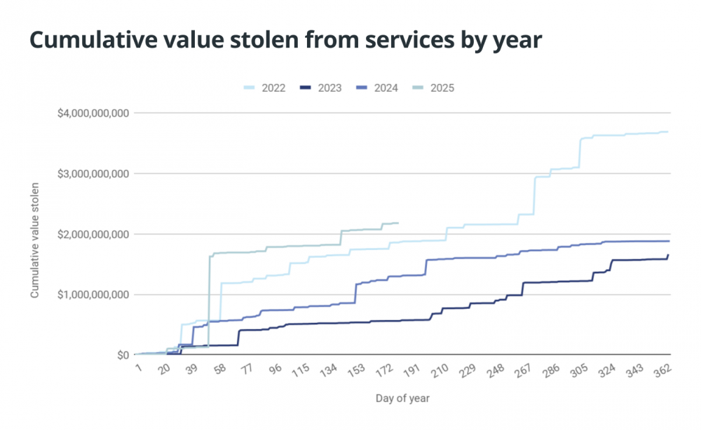 - В первой половине 2025 года было украдено более 2 400 000 долларов, что превышает показатель 2024 года.