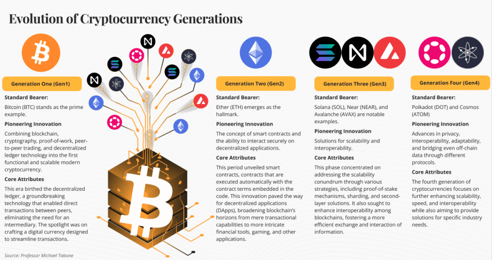 “Биткоин ознаменовал появление первого поколения. Эфириум представлял второе поколение. Solana, Near и Avalanche стали третьим. В четвертое поколение вошли такие проекты, как Polkadot и Cosmos. Каждое поколение опирается на достижения своих предшественников, а криптовалютная сфера продолжает развиваться, осваивая новые горизонты. В этом секторе активно проводятся исследования криптовалют пятого поколения, целью которых является дальнейшее повышение безопасности, снижение энергопотребления и облегчение интеграции технологии блокчейн в различных секторах экономики”, — говорит доктор Табон.