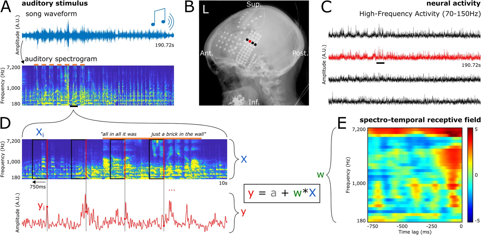 Исследование включало запись электрических сигналов непосредственно из мозга пациентов с эпилепсией, которые уже проходят мониторинг для лечения приступов. Когда пациенты пассивно слушали классическую рок-песню, электроды на поверхности их мозга фиксировали активность областей обработки слуховых сигналов.