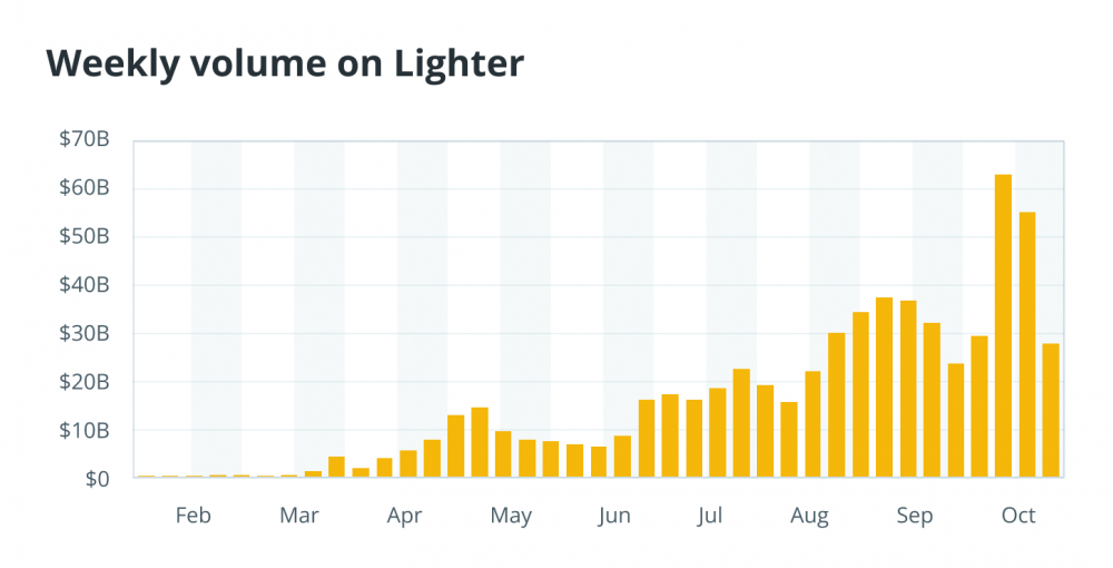 Тем временем, новая биржа Lighter, созданная на основе консолидированного Ethereum, сообщила о ежедневных объемах торгов, превышающих 8 000 000 000 долларов.