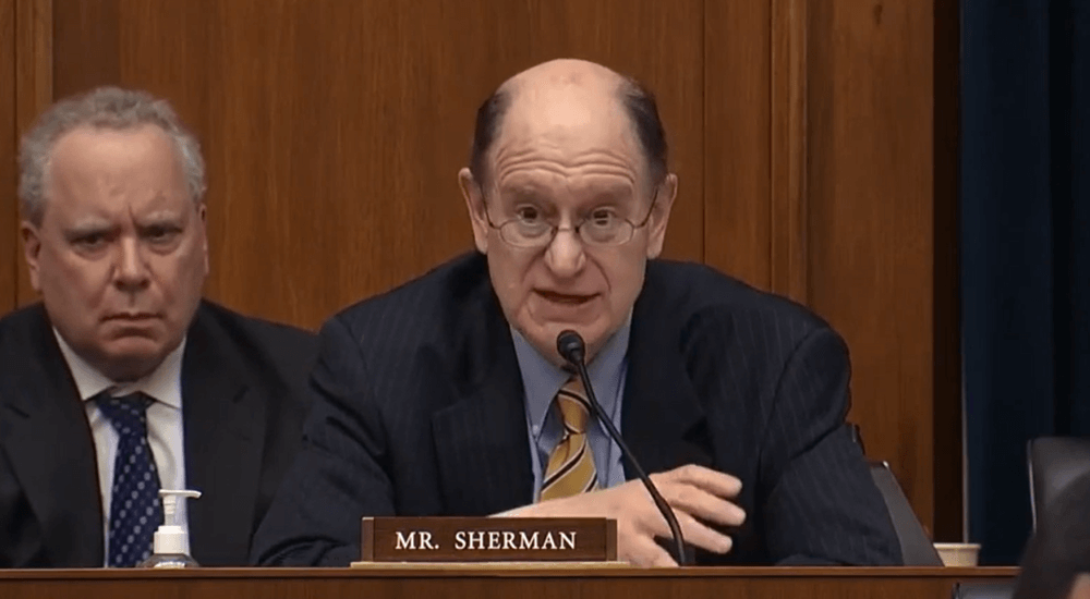 Представитель Брэд Шерман во время слушаний по FTX перед комитетом Палаты представителей США по финансовым услугам. Источник: YouTube.