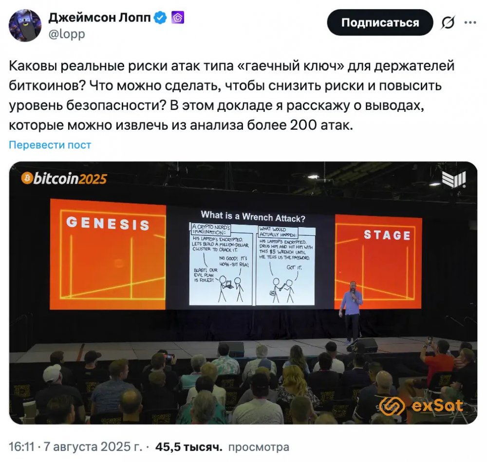 «Если достаточное число людей решит, что самостоятельное хранение биткоина слишком опасно, это приведет к масштабной централизации и системному риску для всей системы. Я уже 10 лет борюсь с этой тенденцией».