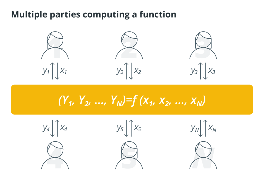 В MPC у каждой стороны есть секретный вход, который все хранят при себе. Процесс выполняется путем тщательного шифрования входных данных и выполнения вычислений с зашифрованными значениями.