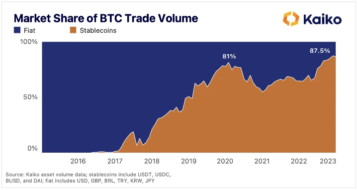 Рисунок 4: Рыночная доля объема торговли BTC. Источник: Kaiko, по состоянию на январь 2023 года.