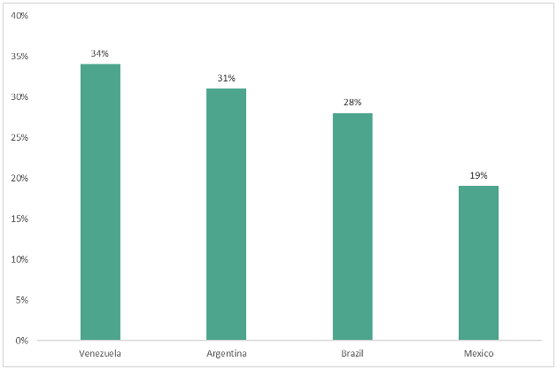 Но у стейблкоинов есть потенциал для преобразования далеко за пределами торговых приложений. Эти токены способны обеспечить доступ к долларам США за пределами местной банковской системы, что может изменить правила игры для тех, кто живет в условиях высокой инфляции. Рассмотрим такие страны, как Венесуэла или Аргентина, граждане которых сталкиваются с ошеломляющими темпами инфляции в годовом исчислении, составляющими 114% и 79% соответственно. Это почти половина стоимости их сбережений, потерянных всего за один год. Стейблкоины могут предоставить этим гражданам многообещающее решение. Предлагая пользователям доступную и стабильную альтернативу местным валютам, стейблкоины могут дать людям возможность защитить себя от воздействия инфляции и девальвации валюты. Возможно, неудивительно, что использование стейблкоинов положительно коррелирует с более высокими темпами инфляции; около трети мелких розничных криптотранзакций в Венесуэле и Аргентине были проведены с использованием стейблкоинов с июля 2021 года по июнь 2022 года (рис. 5).