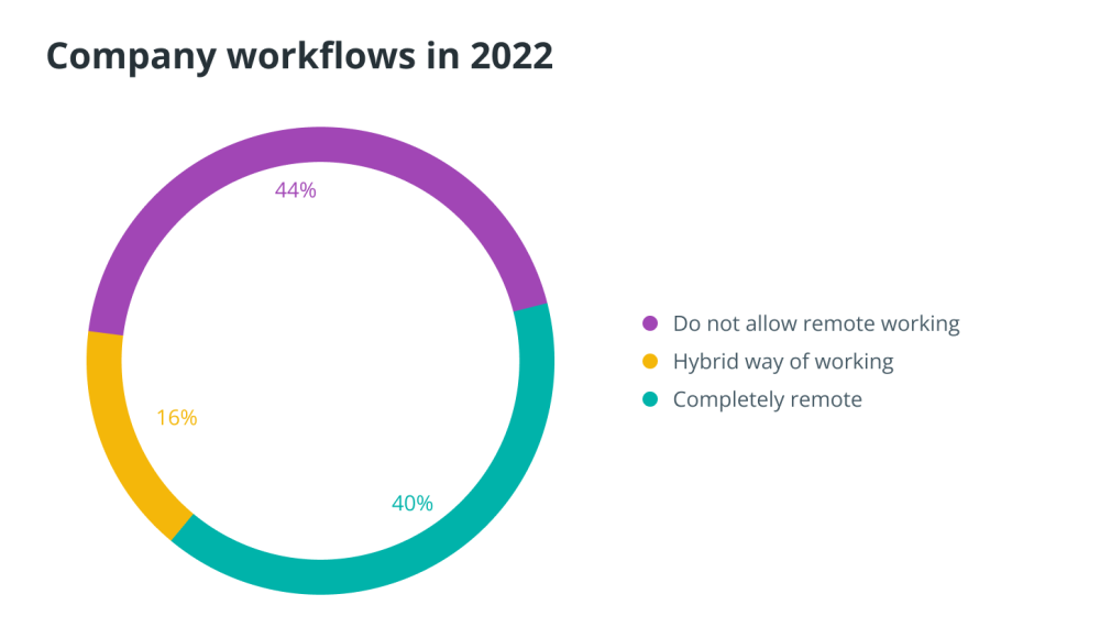 Наконец, следует отметить, что по состоянию на 2022 год 16% компаний во всем мире теперь разрешают 100% удаленную работу, при этом 27% этих работодателей сообщают о заметном повышении производительности компании. Более того, в статье Forbes говорится, что 25% всех профессиональных рабочих мест в Северной Америке к концу 2022 года станут полностью удаленными.
