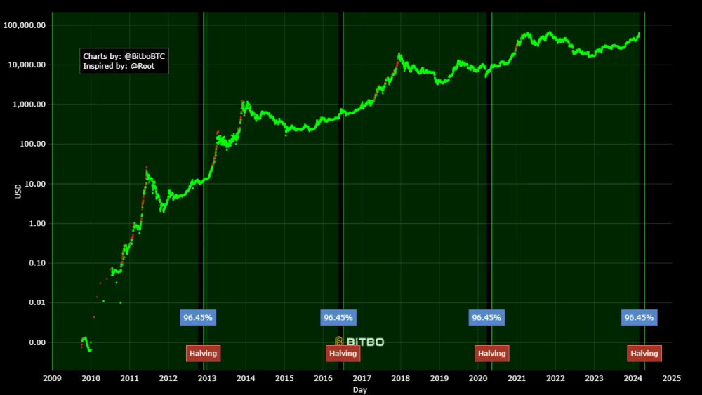 «Основываясь исключительно на данных о прошлых показателях и уменьшающемся влиянии халвинга, биткоин может увидеть рост на 130-150% в течение года после халвинга, что приведет к пику в диапазоне 125 000-150 000 долларов в 2025 году».