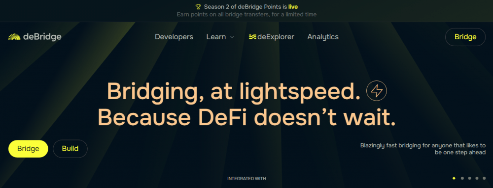 deBridge - это инструмент ликвидности DeFi, который позволяет пользователям перемещать активы и информацию по всей сети DeFi в режиме реального времени. Благодаря высокой ликвидности, узким спредам и гарантированным ставкам deBridge может обеспечить все виды межсетевых взаимодействий, не сталкиваясь с узкими местами и рисками, связанными с пулами ликвидности.