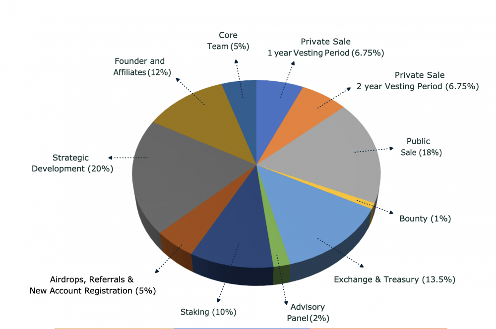 Основная команда проекта DIFX будет владеть 5% предложения, и такое же количество токенов будет выделено на сбросы, рефералов и регистрацию учетной записи на общую сумму 27,5 миллионов токенов. Токены, выделенные основной команде, с другой стороны, будут заблокированы на два года. Эти токены будут распределяться ежеквартально, при этом 3 437 500 токенов будут распределяться каждые три месяца, начиная с 1 января 2022 года. 2% части пирога, которая составляет 11 миллионов токенов, будет выделена Консультативной группе, а оставшиеся 1% от общего предложения будут выделены на награды за безопасность и программы вознаграждений.