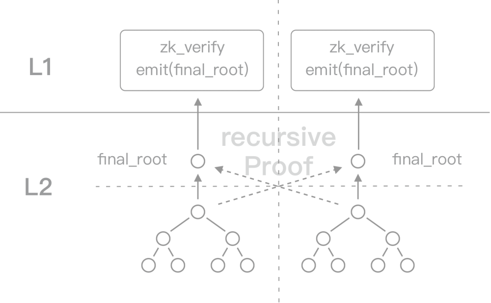 Функция zk_verify одобрит рекурсивный ZK-SNARK до того, как смарт-контракт уровня 1 создаст журнал (final_root).