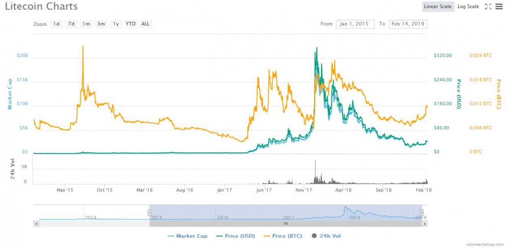 За первые шесть недель 2019 года монета Litecoin (LTC) подорожала до нового максимума, приблизившись к шоковой отметке в $50.